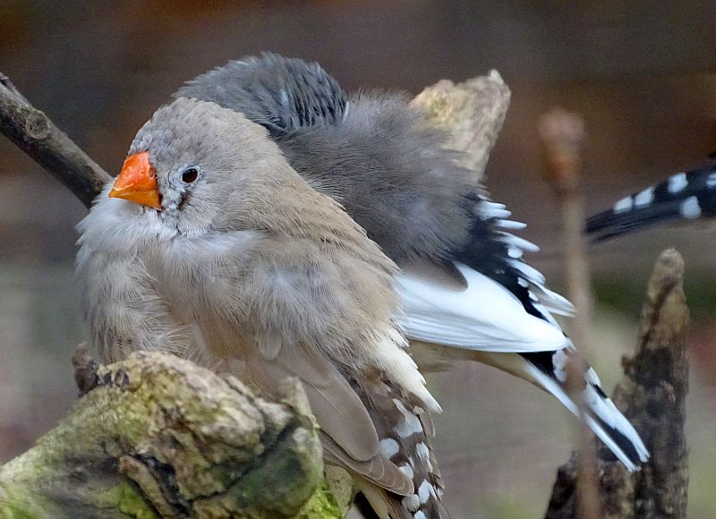Jungvogel bei den Zebrafinken im Tierpark Berlin