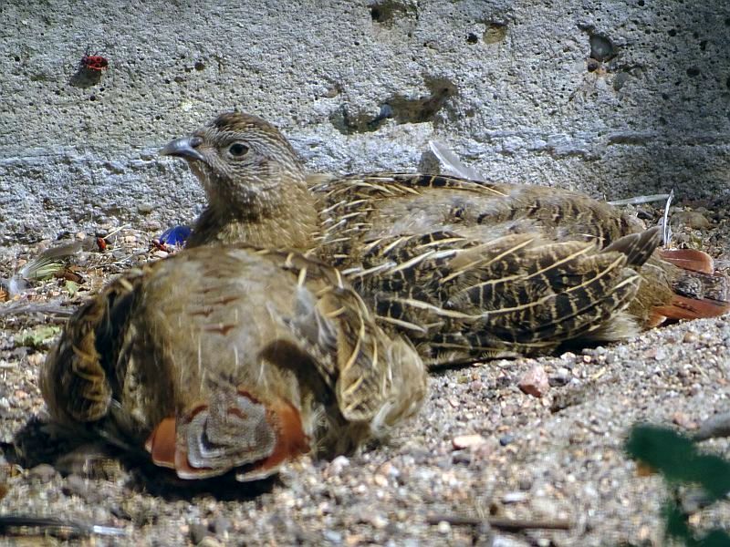 Mehrere Jungvögel bei den Rebhühnern im Zoo Berlin
