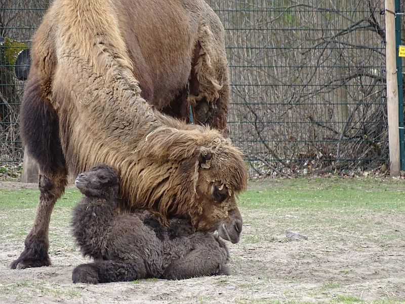 Nachdem Anfang März ein Jungtier bei den Trampeltieren im Tierpark Berlin zur Welt gekommen ist, wurde am 31. März ein weiteres Trampeltier geboren.