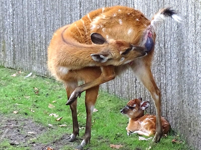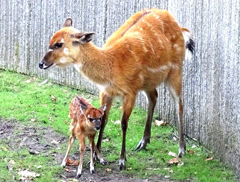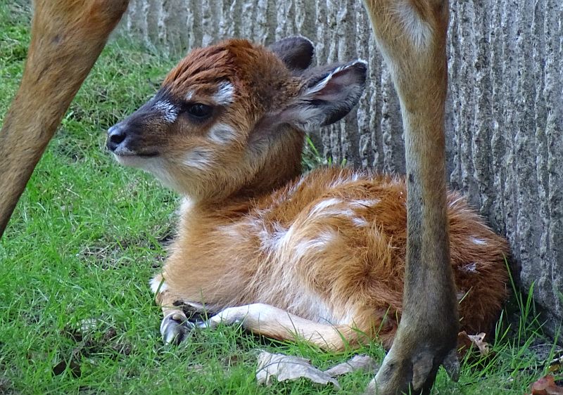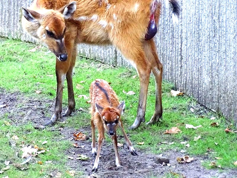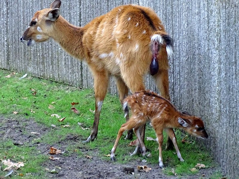Nachdem im August bereit ein Sitatunga im Zoo Berlin geboren wurde, kam am 19. September ein weiteres Jungtier zur Welt. Auf der Außenanlage machte es seine ersten Gehversuche.