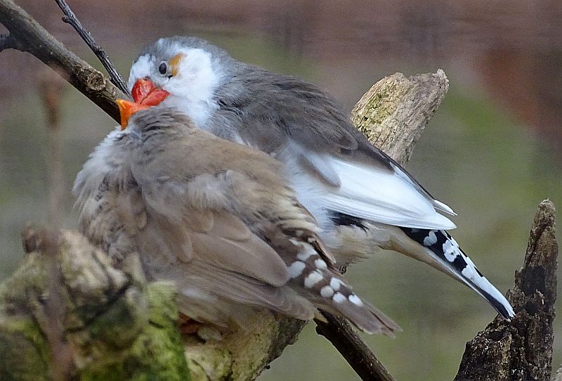 Jungvogel bei den Zebrafinken im Tierpark Berlin