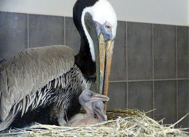 Zwei Florida-Braunpelikane im Tierpark Berlin geschlüpft