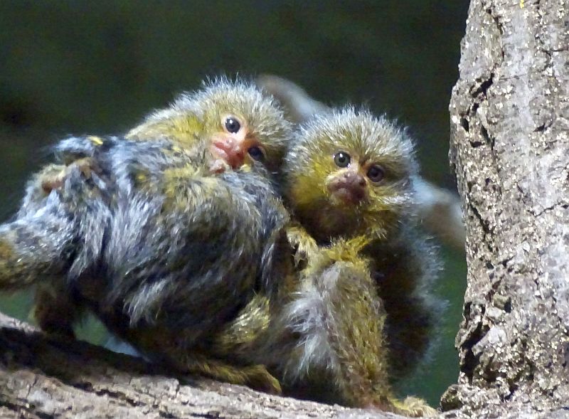 Das im Frühjahr in den Zoo Berlin eingezogene Pärchen Weißbauch-Zwergseidenäffchen im Affenhaus hat Zwillinge bekommen. Mit 13 Zentimetern Körperlänge sind Zwergseidenäffchen die weltweit kleinsten Affen.